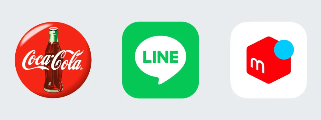 コカ・コーラの赤、LINEの緑、メルカリの赤と白。
